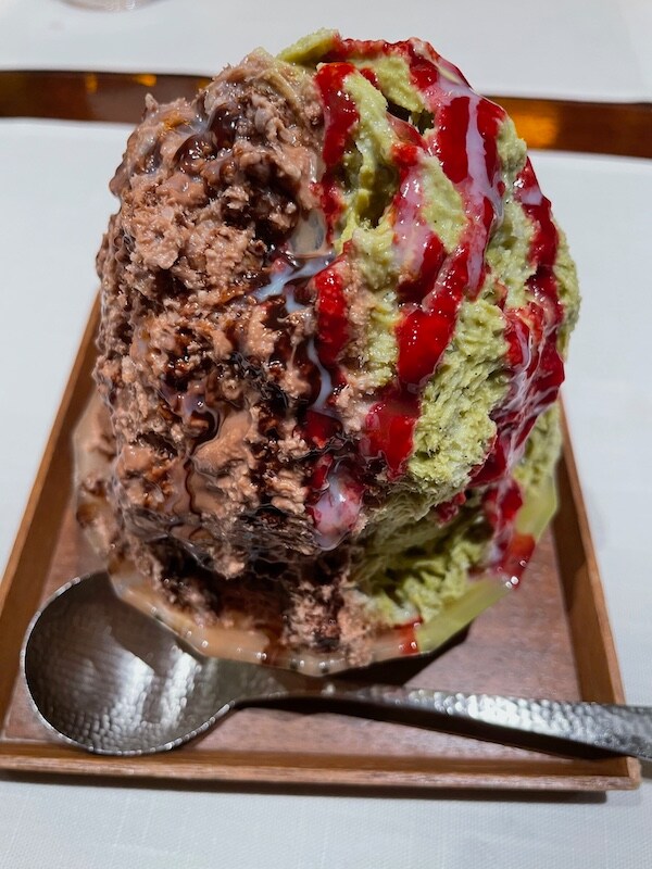 忘年会で頂いた中で一番インパクトあったのはこちらのかき氷。ピスタチオとチョコレートのかき氷なんて初めて食べました。美味しすぎます。