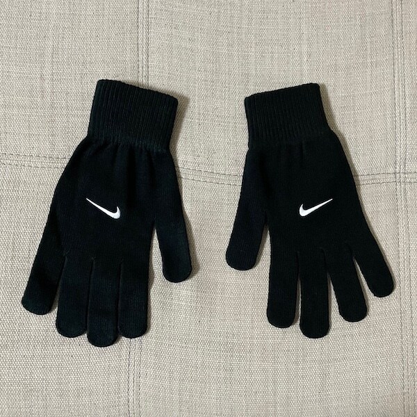 買い物は寒いんで手袋。『NIKE』の手袋を買いました。左側の右手の手袋はスウォッシュが左右反転の逆バージョン。まあまあレアです。