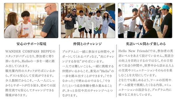 別府市産業連携・協働プラットフォーム B-biz LINKが運営する、JR別府駅構内の交流型観光案内所「WANDER COMPASS BEPPU」が、観光案内所を舞台に世界中から訪れる外国人観光客とリアルに英語で交流できる国際交流体験プログラム「Hello New Friends! ~わくわく英語の大冒険、Helloから始まる国際交流プログラム~(以下、Hello New Friends!)」を、2026年1月12日(月・祝)よりスタートする。それに伴い、12月18日(木)に全国から参加者の募集を開始した。