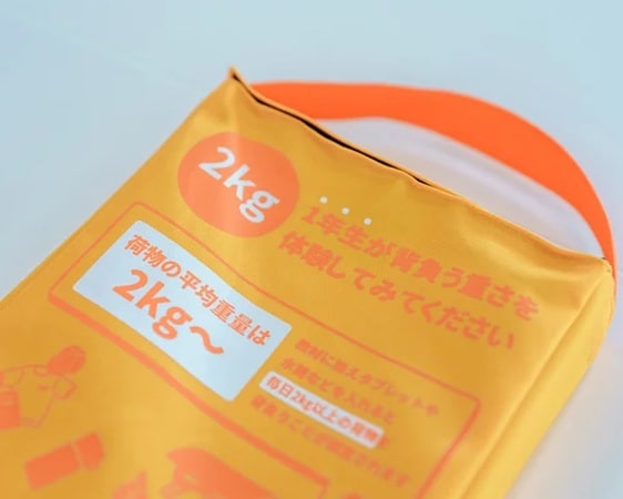 会場に用意されている重りを入れて、背負いやすさを体験
