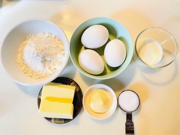 4. 卵は卵黄と卵白に分ける。卵黄に[A]を入れてよく混ぜる。