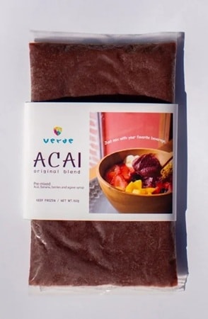 「verde ACAI original blend」は、素材の甘さをいかしたオリジナルブレンドで、アサイーとバナナ、ベリーを中心にブレンドされており、自然な甘さが特徴。「アガベシロップ」を隠し味に入れ、「verde」ならではの味わいに仕上げられている。