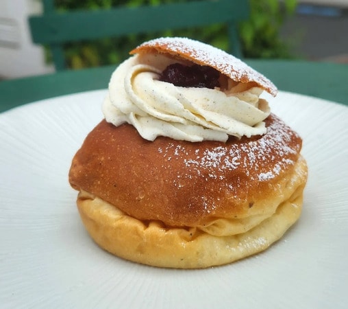 フィンランドの伝統的な菓子パンで、イースターの前に食べる「ラスキアイスプッラ」450円も用意。ジャムとアーモンドペーストを入れた、贅沢な白井屋バージョンになっている。