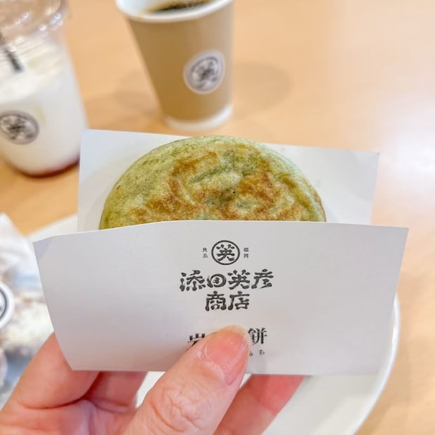こちらは、添田町のカフェ「クロマティック」謹製の岩石餅がんじゃくもちの緑茶味です。