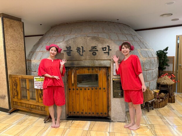 まず体験したのは、韓国伝統のサウナ「汗蒸幕」。