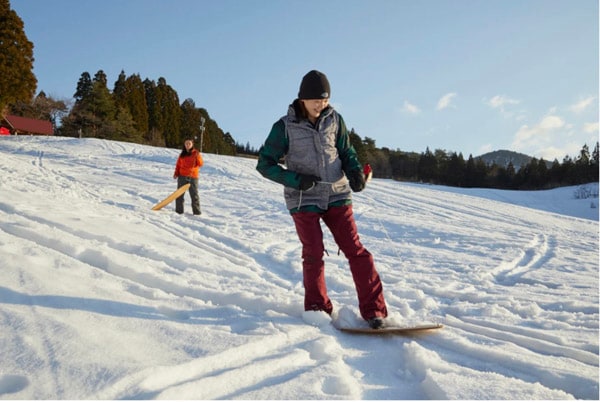 その議論の中で、メンバーの一人から五箇山に伝わる昔の雪遊び「ベンタ」の存在が提案された。「ベンタのり」とは、五箇山の昔の暮らしの資料にも紹介されている、ビンディングもない一枚の板で雪上を滑る遊び。