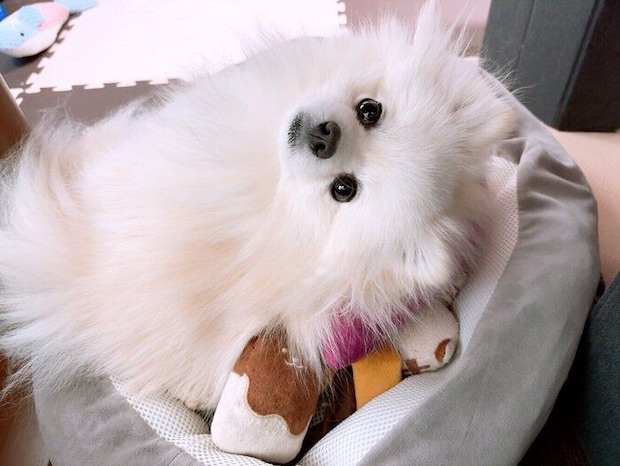 写真は、X(旧Twitter)ユーザー@chirimenchacoさんの愛犬でポメラニアンのうにちゃん(取材時2才)。飼い主さんがこの写真を「ふつうにひじ掛け使うのやめれる?」としてXに投稿すると、約10万「いいね」がつくなど話題になりました(2025年12月16日時点)。