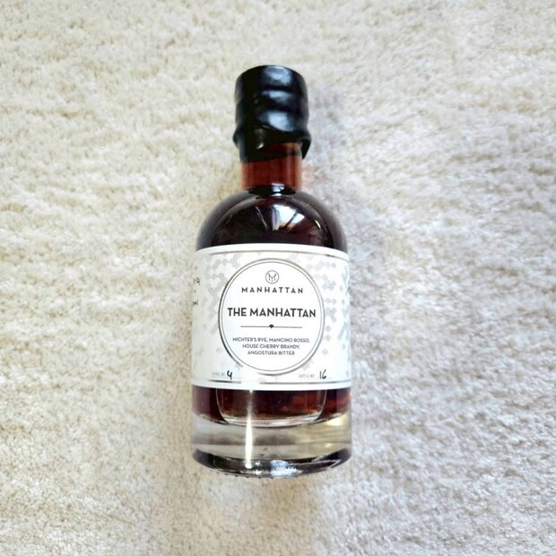『マンハッタン』のカクテルTHE MANHATTANはお持ち帰り用で59シンガポールドル(日本円で約7,177円)。マンチーノロッソというベルモットやシェリー酒などを用いたカクテルで、甘口ですがほろ苦さもある、多面的な魅力のあるお味。