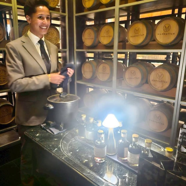 ホテル内にあるバーの中で、カクテルを樽で熟成させています。そんなバーはこちらが世界初なんだそう。