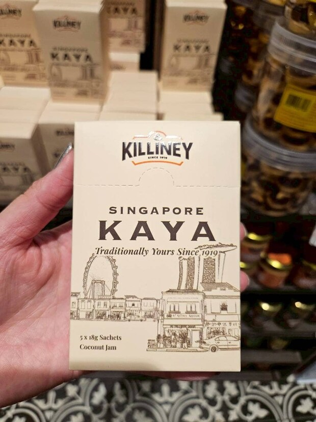 カヤジャムとはいわゆる、ココナッツと卵と砂糖でできたスプレッド。朝食のシーンでトーストに塗って食べるのが主な用途です。ちょっとカスタードっぽさもある、東南アジア全域で好まれている濃厚な甘さは、パンをよくお召しになる方に。各種ベーカリーやコーヒーチェーン店がこぞってカヤジャムを販売していますが、2025年秋、スーパーマーケットで、人気コーヒーショップKILLINEY(キリニー)の、瓶入りではない個包装のタイプを発見。おお! これはおみやげに便利!