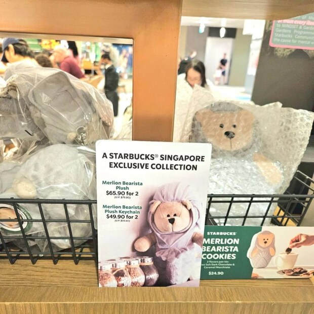スターバックスではクマがマーライオンの着ぐるみを着せられているクッキーやぬいぐるみが。もともとライオンだったはずなのにクマにされてる、もうなにがなんだかわけがわかりません。