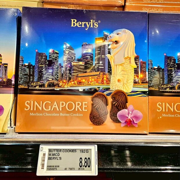 スーパーマーケットで鎮座していたマーライオン型のバタークッキーは8.8シンガポールドル(日本円で約1,070円)。