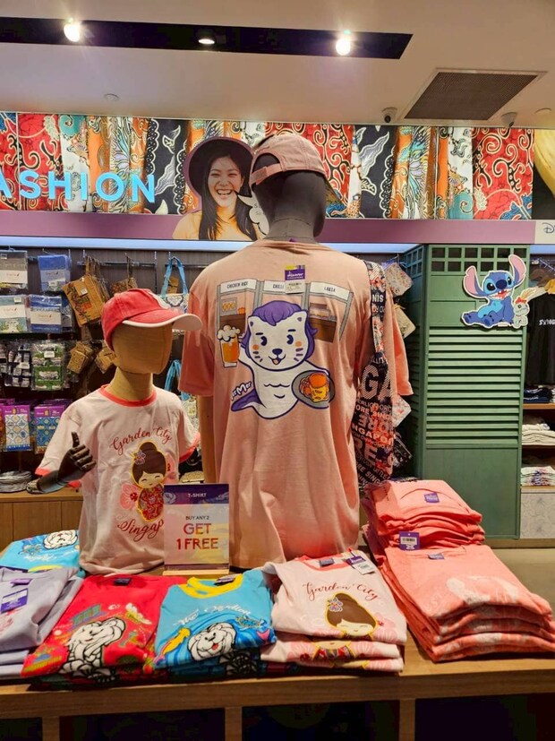 空港内のスーベニールショップではこれでもかってほどマーライオンプリントのTシャツなどが売られています。