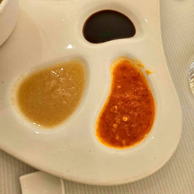 これこれ。こちらはホテルでいただいたチキンライスなのでスープレストランのジンジャーソースではありませんが、海南チキンライスをいただくときに必要なソースはこちらです。ジンジャーソースが一番、入手難易度が高いんですよねえ。