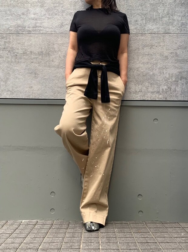 深めに作られた股上はハイウエストではもちろん、腰を落としてはいてもサマになるデザインで、くびれのない私はズルっと腰を落として少年のようにはいています。太過ぎず細過ぎず、適度に肉厚な素材はボディラインも拾い過ぎないところもお気に入り。秋はソックス×ヒールパンプスと、冬はミドルブーツの裾を少したゆませてブーツインしたいなと妄想が膨らんでいます……!
