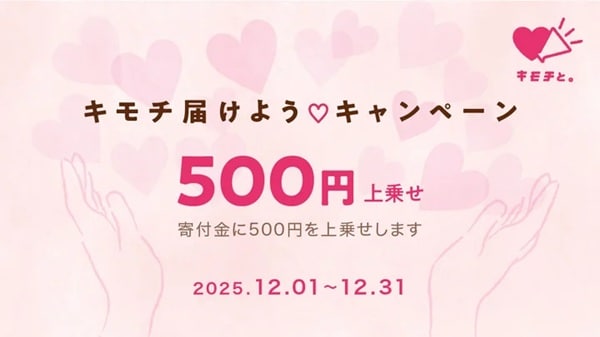 さらに、寄付月間の12月中は、10点以上の品物を送ると500円が上乗せされて寄付されるキャンペーンも実施している。