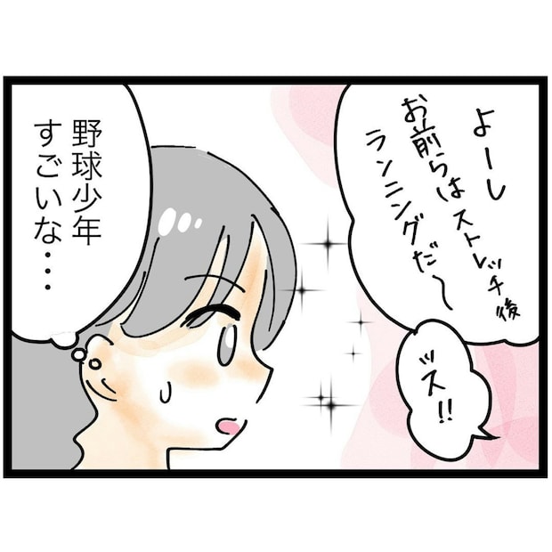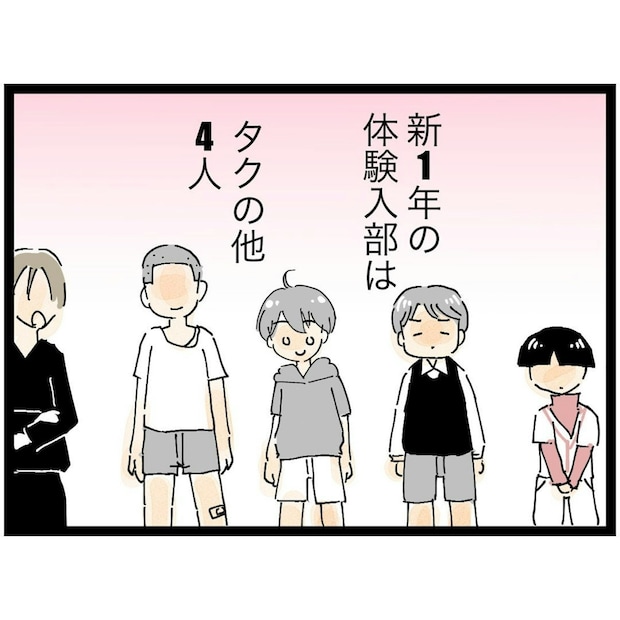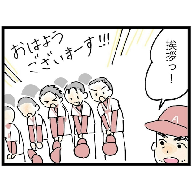 年長の息子を少年野球の体験入部に参加させた主人公・もっつんさん。大きな声でしっかりと挨拶をする野球少年たちに驚きつつ、いざ体験入部がスタートします。
