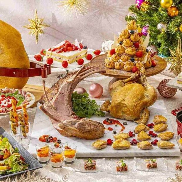 冬の期間は香ばしく焼き上げたローストチキンなど、ホリデーシーズンならではの華やかなメニューが勢揃いする。ライブ感たっぷりのシェフズステーションに加え、思わず写真におさめたくなるようなデザートも必見。