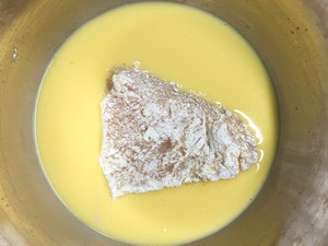 卵液→粉の手順をもう一度繰り返します。2度目の卵液は漬けこまず、さっと付けでOKですよ。