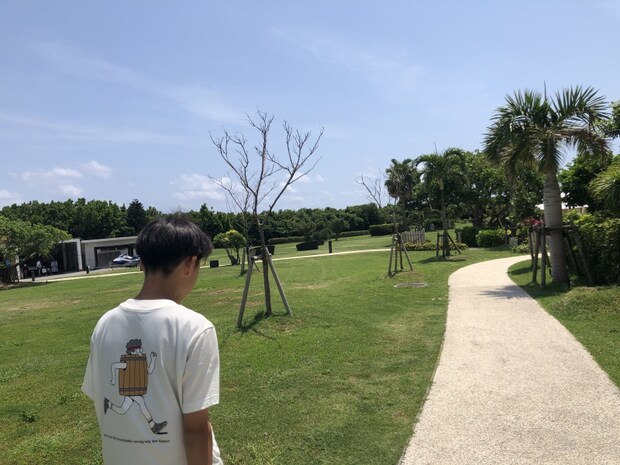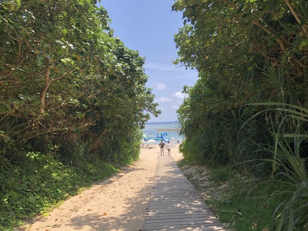 舗装された道からビーチまでの小道のアプローチは、沖縄らしい木々に囲まれていて、なんだかワクワクしてしまいます。