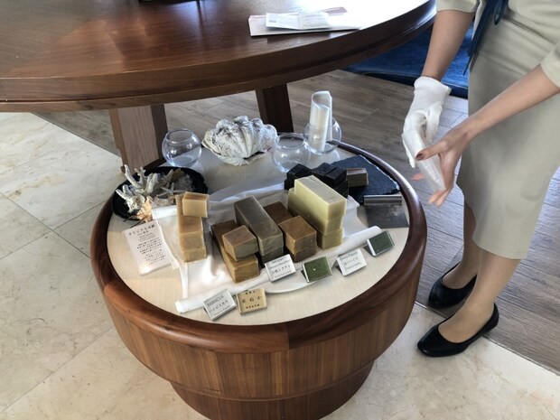 また、時期によるかもしれませんが、お部屋のバスタイムに使える、手作りのオリジナル石鹸もいただけます。米ぬか、ハイビスカス、青パパイヤ、よもぎなどなど、たくさんの種類から選ぶことができます。