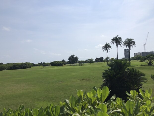 この芝生はマエサトゴルフコース に繋がっています。ゴルフコースまではとても離れているので、ゴルフボールが飛んでくる心配はありません。