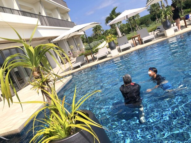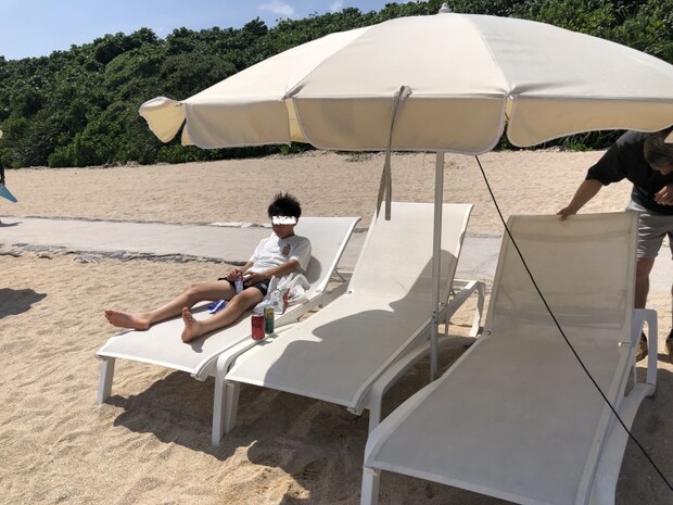 ビーチタオルや、パラソル・チェアセットは、ANAインターコンチネンタル石垣リゾートの宿泊者であれば 無料!外来の方は、ビーチタオルが1枚500円、パラソル・チェアセット(パラソル1本・チェア2脚)が1日6,000円、60分3,000円です。(税込 2025年現在)