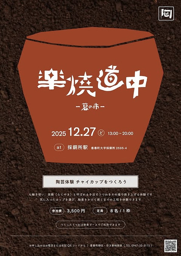 The post 【香春】12月27日(土)、採銅所駅で「陶芸体験ワークショップ第3弾 楽焼道中-暮の市-」が開催されます! first appeared on 筑豊情報マガジンWING.