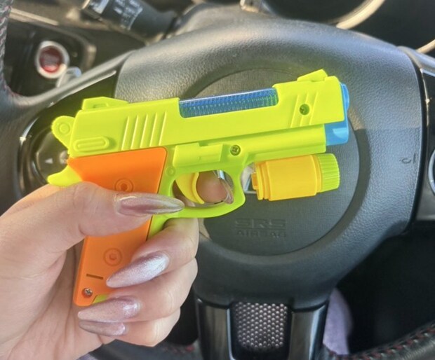 ひと目でおもちゃだとわかるものの、“(おもちゃの)ピストルを持った人”になってしまうことに笑ってしまいました。色がカラフルだからよいですが、これが黒色なら見かけたときにドキッとしてしまいそうですよね…。