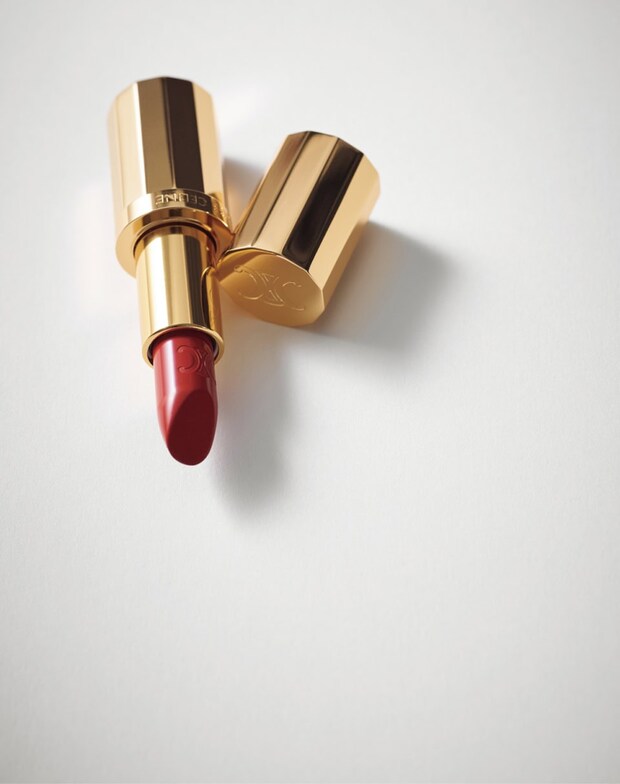 一生モノのジュエリーのようなタイムレスな魅力を放つのが、アールデコ建築などから着想を得たゴールドのパッケージも美しい、セリーヌ ボーテのリップスティック。サテンライクに艶めく15色は、赤の美しさが際立つラインナップ。特に01番は濁りのないピュアレッド。一点投入するだけでスタイルに華を添え、肌に透明感を宿してくれる。