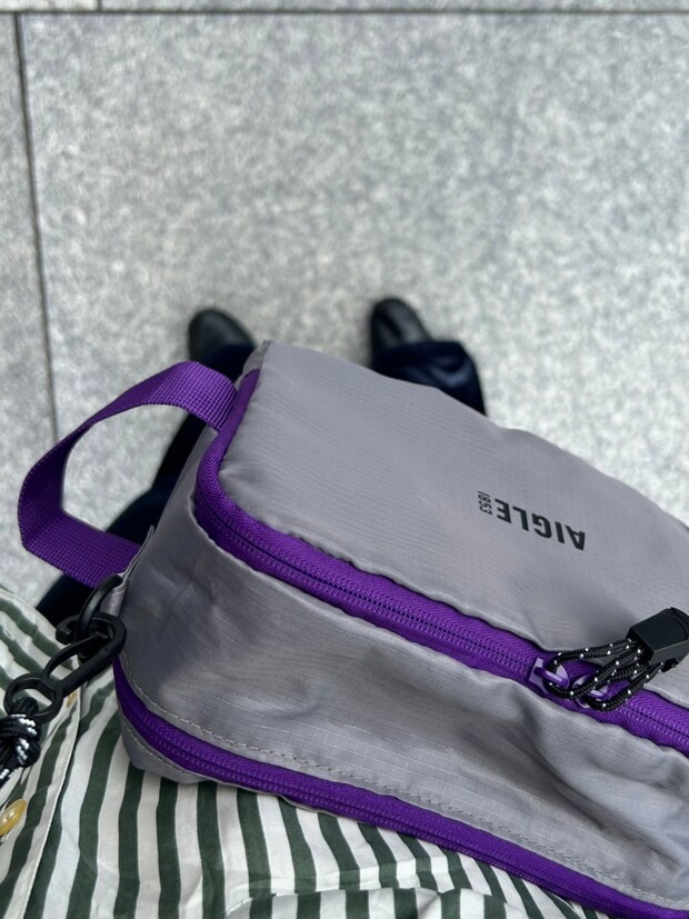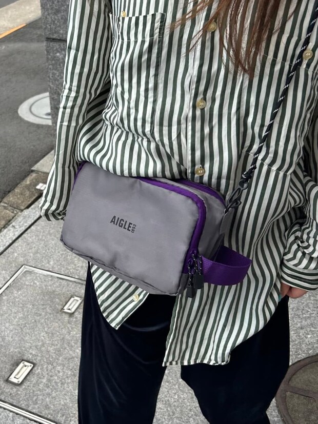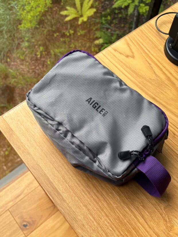 ポーチの厚さはこのくらい。撥水素材でスポーティなワンポイントに。