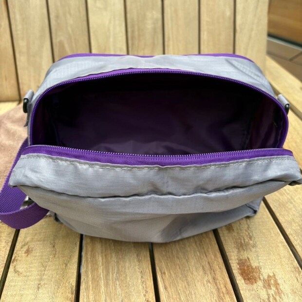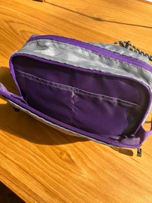 前面はダブルジップで荷物の取り出しやすさも◎。内側にポケットが2つついています。