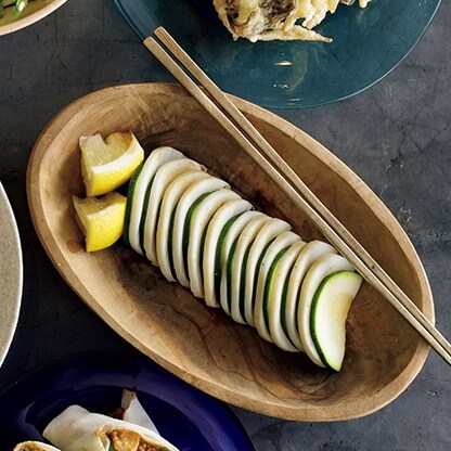 家に常備しているものでパパッと作れるので、来客時にも重宝。かまぼことズッキーニはなるべく薄く切ることで、華やかな雰囲気に!