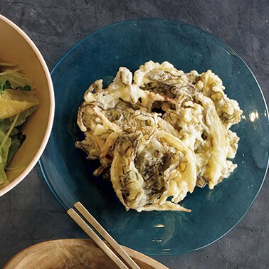 好みで仕上げに塩をふっても! もずくのうま味と玉ねぎの甘みが、ふわっと柔らかめの天ぷらとよく合い、パクパク食べちゃいます