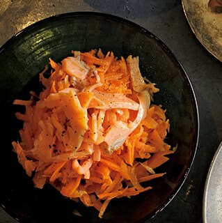 1 にんじんは皮をむき、チーズおろし器かスライサーで細切りにする。ボウルに入れてAを加え、和える。