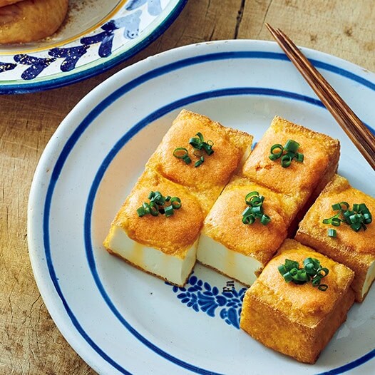濃厚な黄身をプラスして食べごたえアップ「厚揚げの明太焼き」
