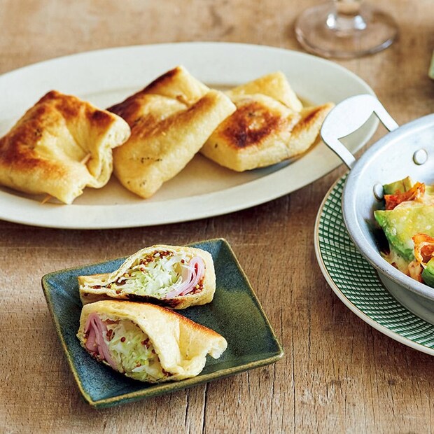 じっくり焼くと、キャベツがしっとり蒸し焼きになって美味「ハムとキャベツの油揚げ焼き」