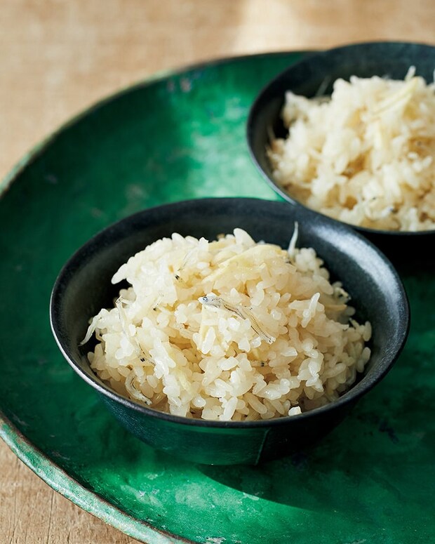 1 米はといで水けをきり、炊飯器の内釜に入れる。水を2合の目盛りまで注ぎ、Aを加えて混ぜる。しょうが、ちりめんじゃごを散らし、ふつうに炊く。
