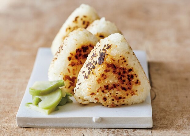 おにぎりは先ににぎっておくと、表面が乾燥してカリッと焼ける「ゆずこしょうのバター焼きおにぎり」