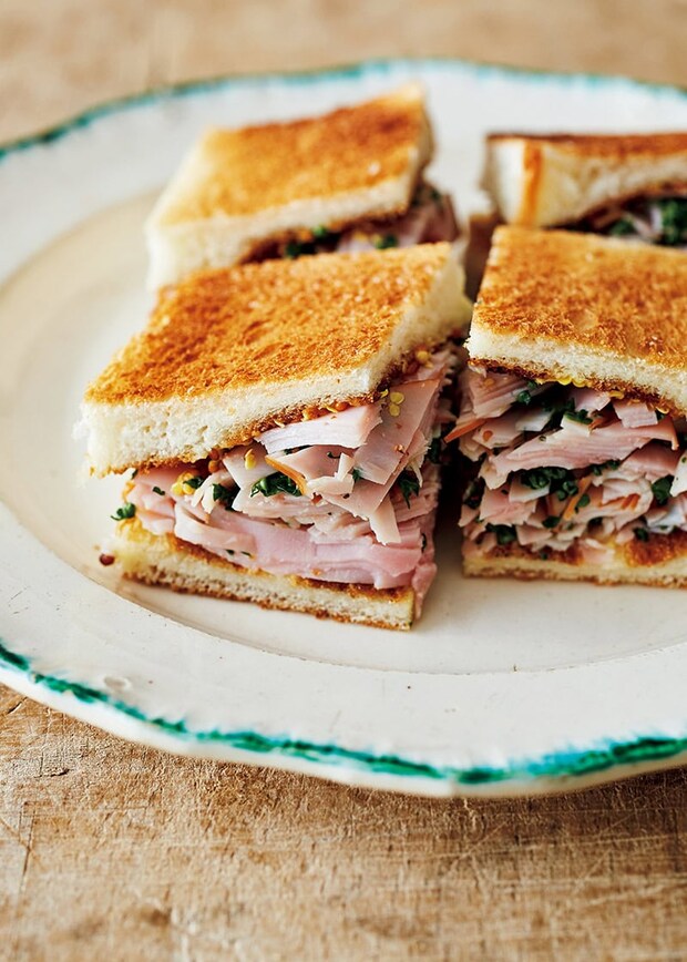 具材に味つけ不要! パンにマヨネーズとマスタードをしっかり塗って「ハムパセリサンド」