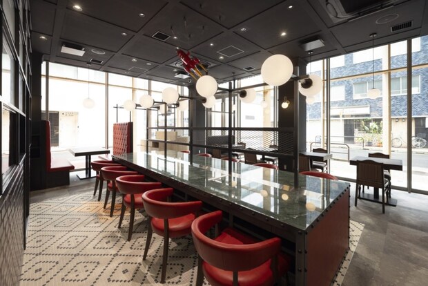 次世代型店舗「いきなり!ステーキ神田北口店」と既存店との大きな違いは、客席と調理設備にある。従来型であれば50席以上を確保できる面積だが、あえて38席とし、ゆとりのある空間設計とした。