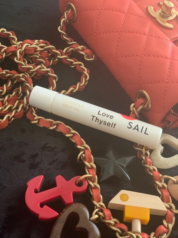 最近、バッグに忍ばせているお気に入りの香りは、ヴァーサタイルセルフオイルのLove Thyself。ロールオンタイプ 7mL 各¥ 4,290(税込)。これはネロリ、ローズ、イランイラン、ローズゼラニウム、フランキンセンスなどが配合された、イライラや揺らぎを感じたとき、女性性を高めたいときにオススメの香り。