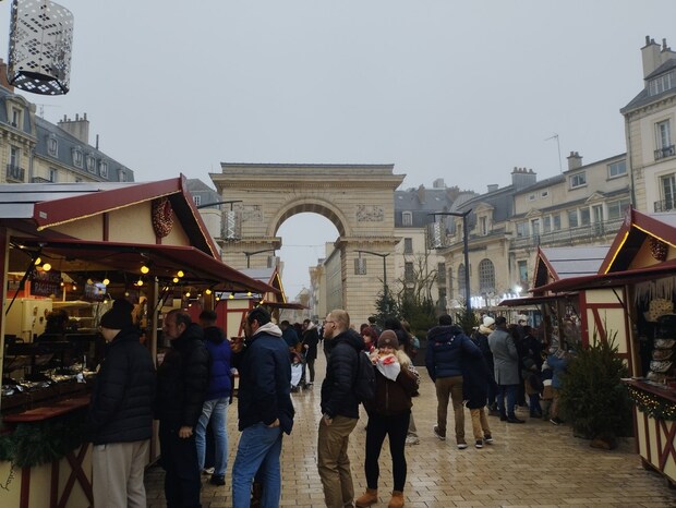 大きなクリスマスツリーが据えられた写真は 比較的大きな町、ディジョン市のリベラシオン広場。