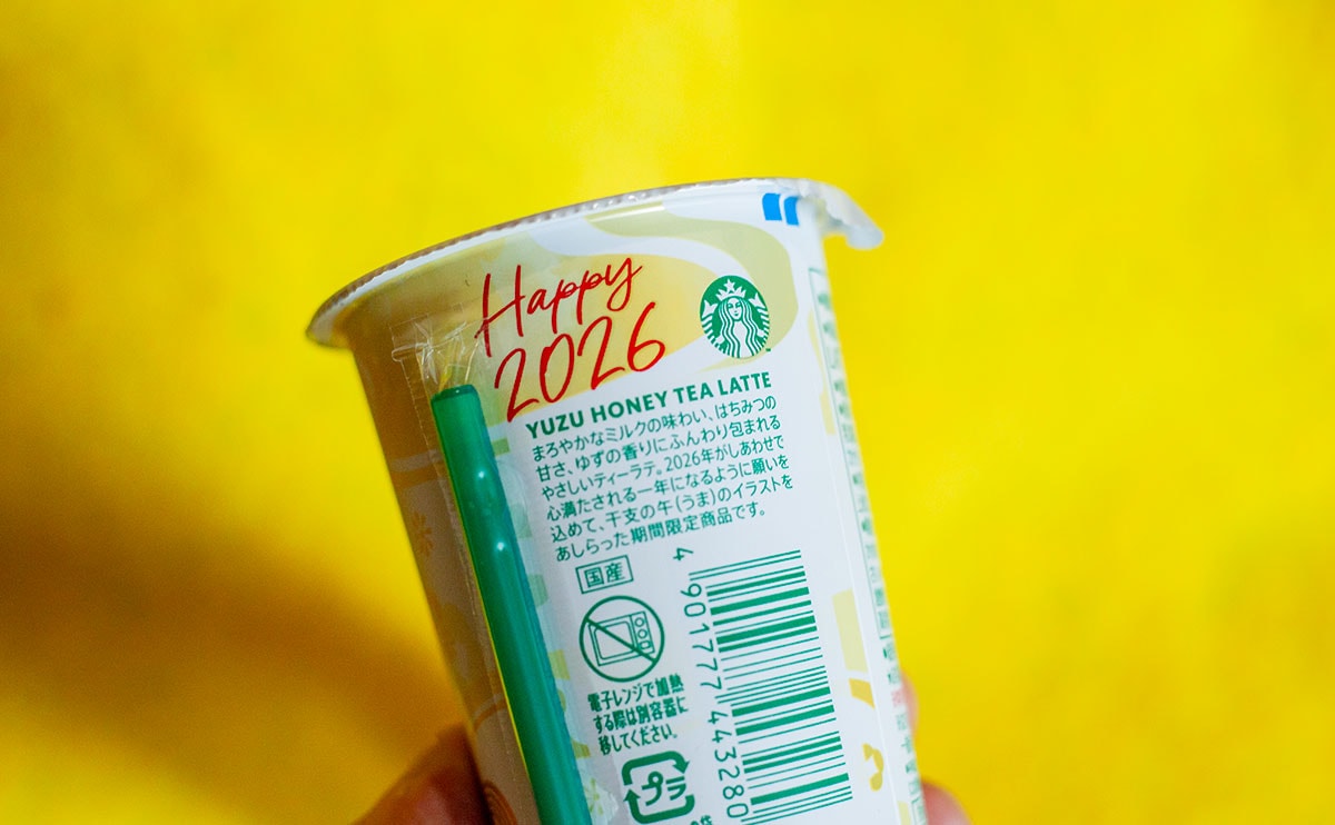同商品は、スタバならではの新しさやワクワク感、驚きを楽しめる「スターバックス® DELIGHT ME™」シリーズの第3弾。昨年に引き続き干支デザインのカップになっていて、白×金で華やかさを演出。2026年は午年ということで、馬(午)の絵があしらわれています。まろやかなミルク、甘いはちみつ、そして爽やかなゆずを合わせ、やさしい味わいのティーラテに仕上がっているそうですよ。
