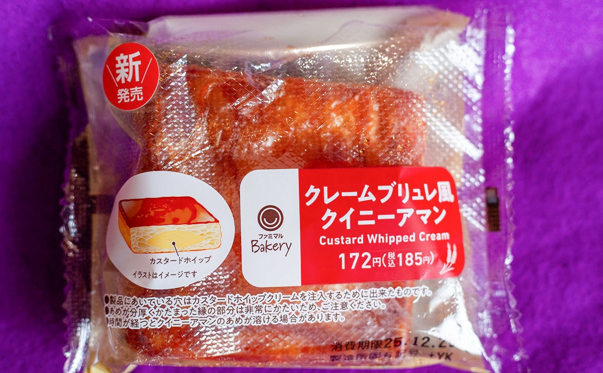 2025年12月23日(火)、ファミリーマートは、「クレームブリュレ風クイニーアマン」(税込185円)という新商品を発売しました。