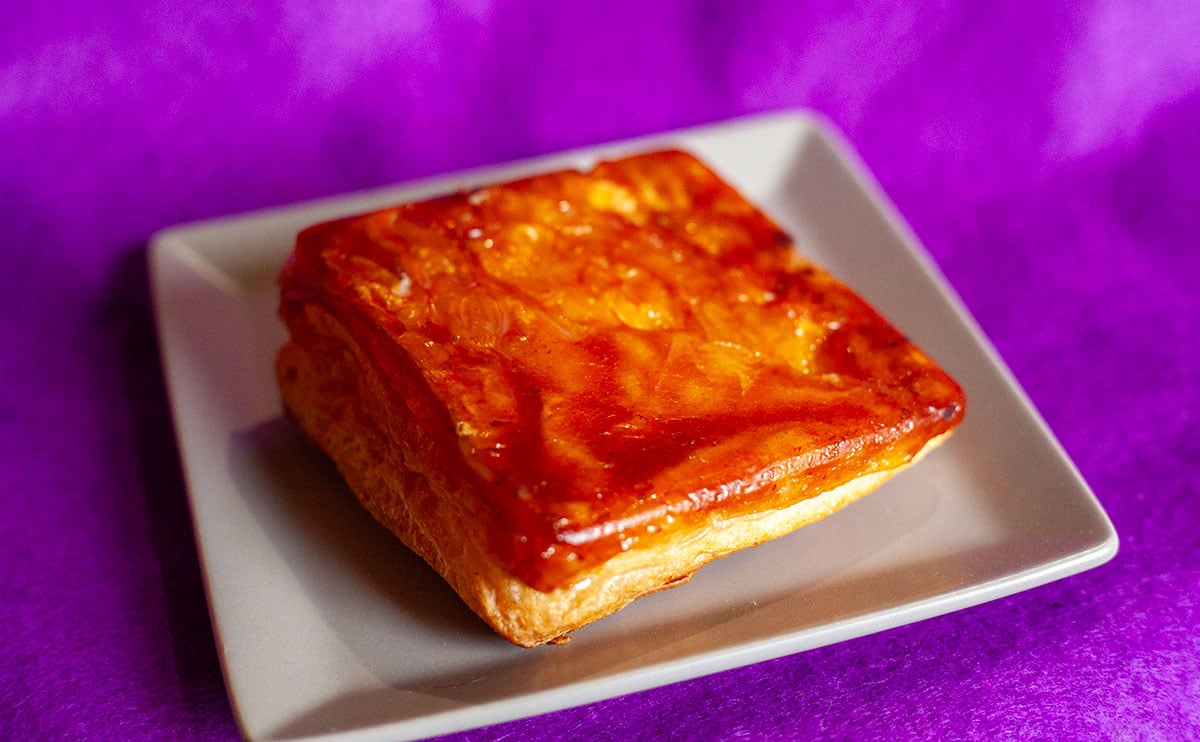 先に言ってしまうと、これはおそらく好みが別れるやつですね。というのも、クイニーアマン好きの方々は、歯が折れるのではないかと心配になるくらいの固さを求める人も少なくないと思っているのですが、ブリュレ風になっているからか飴が薄くて、食感も軽い印象です。香ばしさや強い甘さはあるものの、この食感がどちらに転ぶか……。
