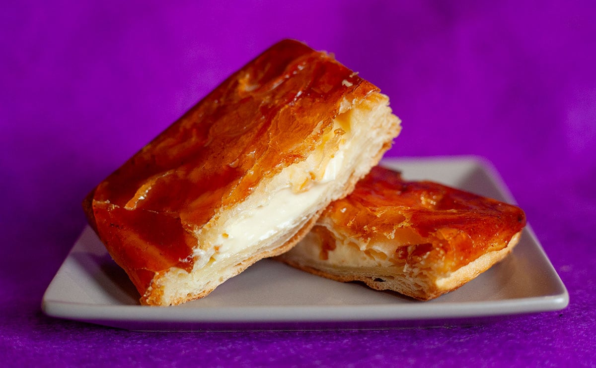 一言で言えばクイニーアマンなのですが、名前からもわかるとおり、ブリュレ風になっているそう。クイニーアマンといえば、表面の飴がポイントとなりますが、そこをブリュレ風にして、さらにカスタードホイップを注入したのだとか。いや、食べる前からわかる。こんなのおいしいに決まってる!!