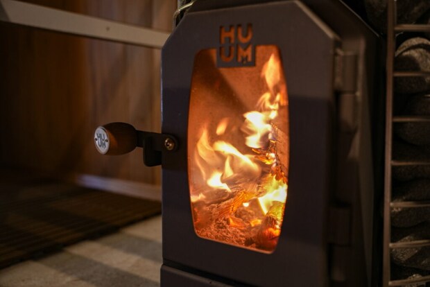 2つのストーブがあり、電気ストーブと薪ストーブをハイブリッド運営しているということです。