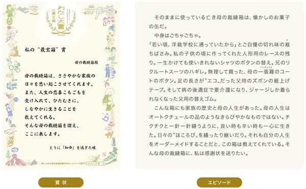 「わたし大賞」は、一人ひとりの心を動かした「人 モノ コト」に光を当て、賞状とエピソードにして讃え、書く人読む人の前向きな気持ちを共有することで、人々や社会の「幸せ」を創造する活動。