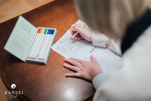 また、視覚テーマをさらに深める体験として、 全客室にオリジナル心理アートワークとなる塗り絵を設置している。塗り絵シートと色鉛筆を用い、直感で選んだ色や塗り方から その時の心の状態を“視覚的に”理解できるKANSEI独自のコンテンツだ。